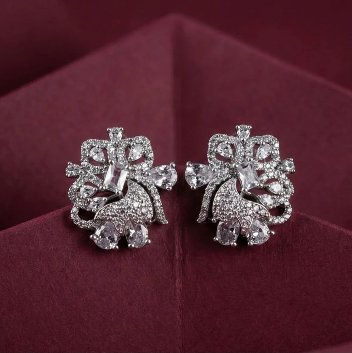 Shiny white stones that add additional brilliance and charm are set beside brilliant silver AD stones that embellish the studs.