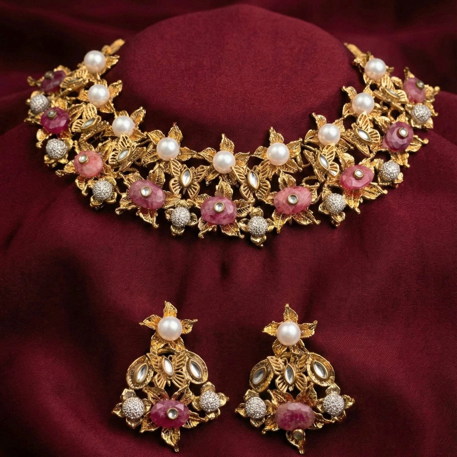 This set exudes charm and is perfect for both formal and informal settings, whether you go for the pink stone decorations or the golden flowery pattern.