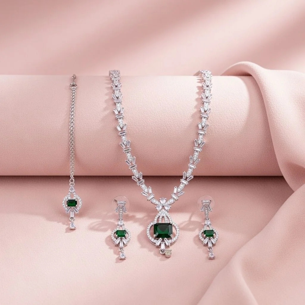 With this antique necklace set, which is designed in a sophisticated silver frame that radiates classic charm, you may step into timeless elegance.