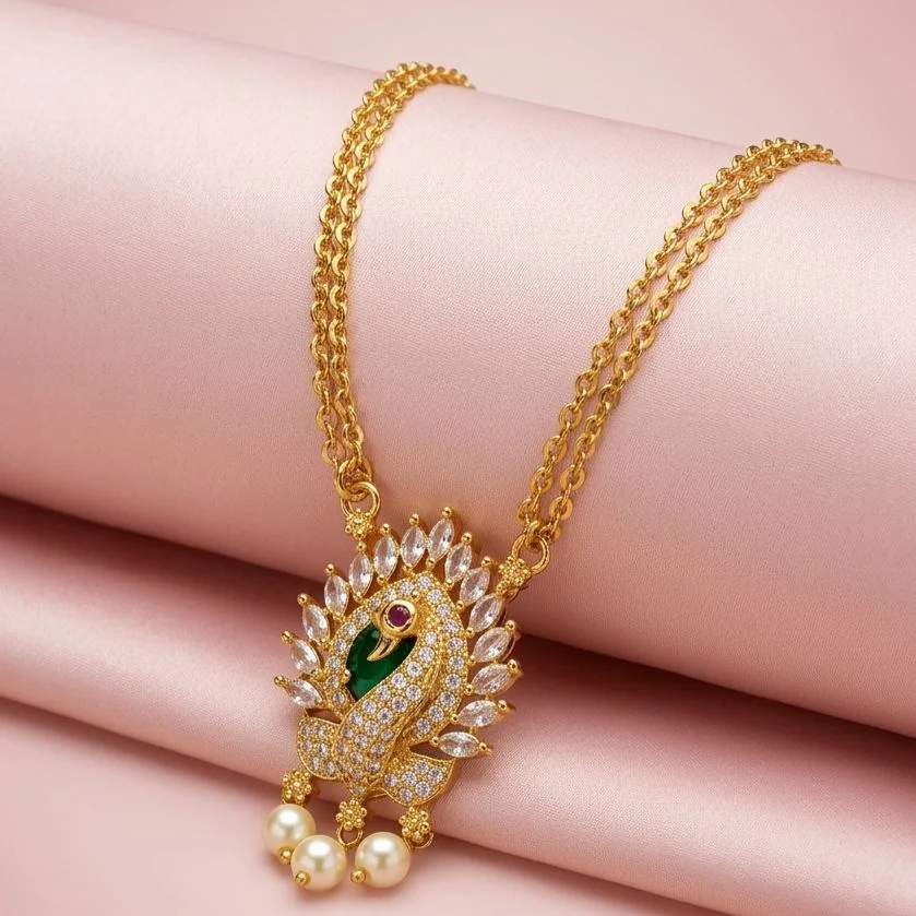 This exquisitely made bird green pendant has a polished gold-plated finish and radiates charm and elegance.