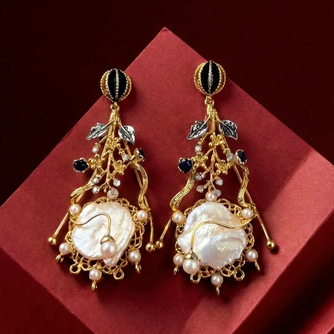 A delicate, feminine touch is added by the earrings' elegant branch-style white pearl accent.