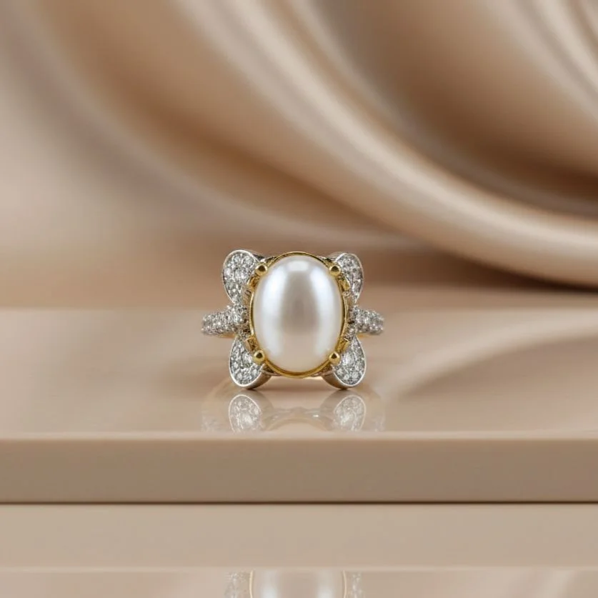 A beautiful and striking appearance is produced by the elegant blending of the pearl, zircon shine, and golden details.