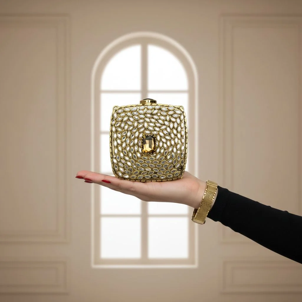 This Champagne Mini Clutch is a sophisticated combination of charm and elegance that will elevate your ensemble.