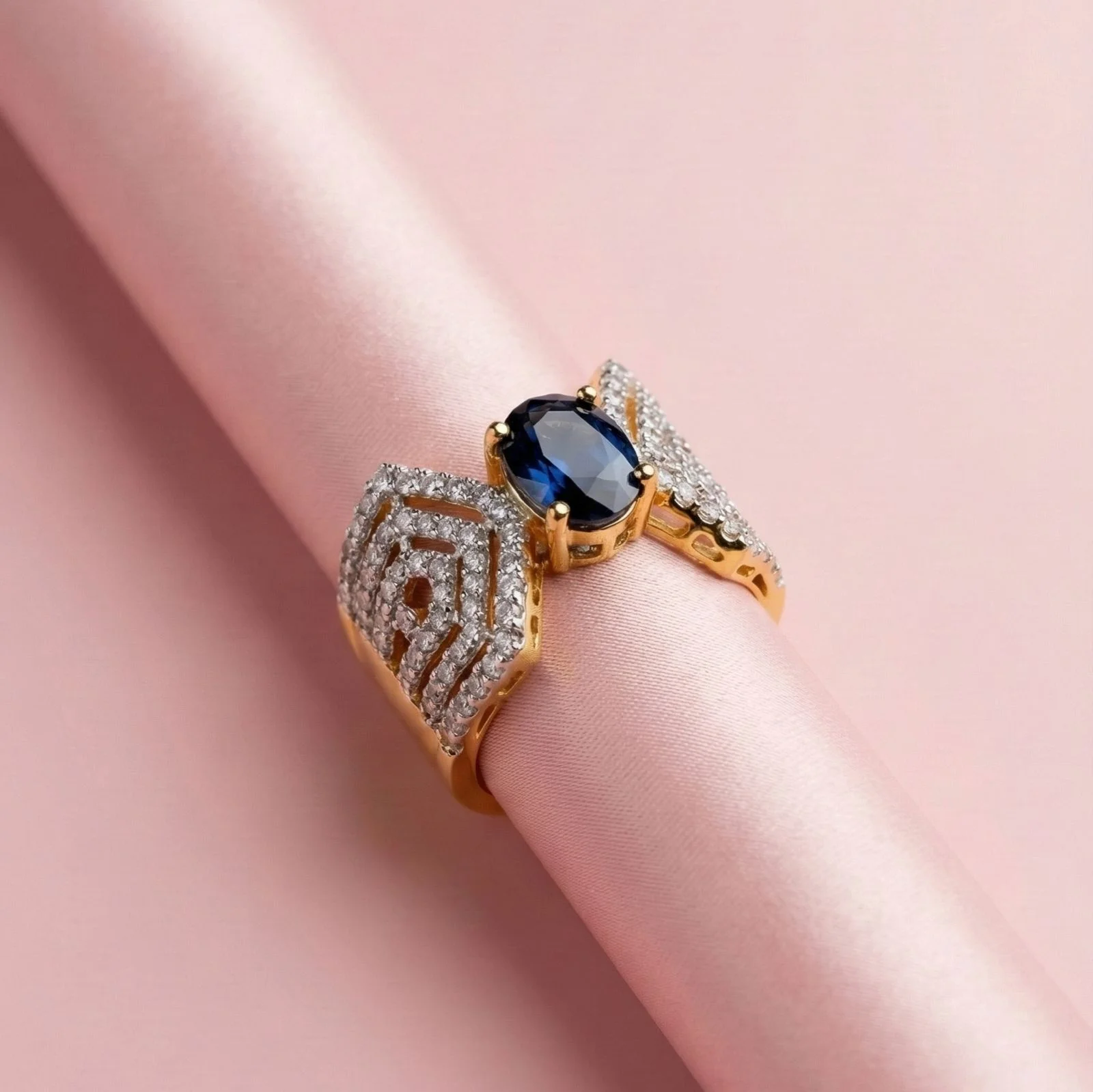 The ring has stunning silver zircon embellishments that provide even more brilliance to the shiny blue main stone.