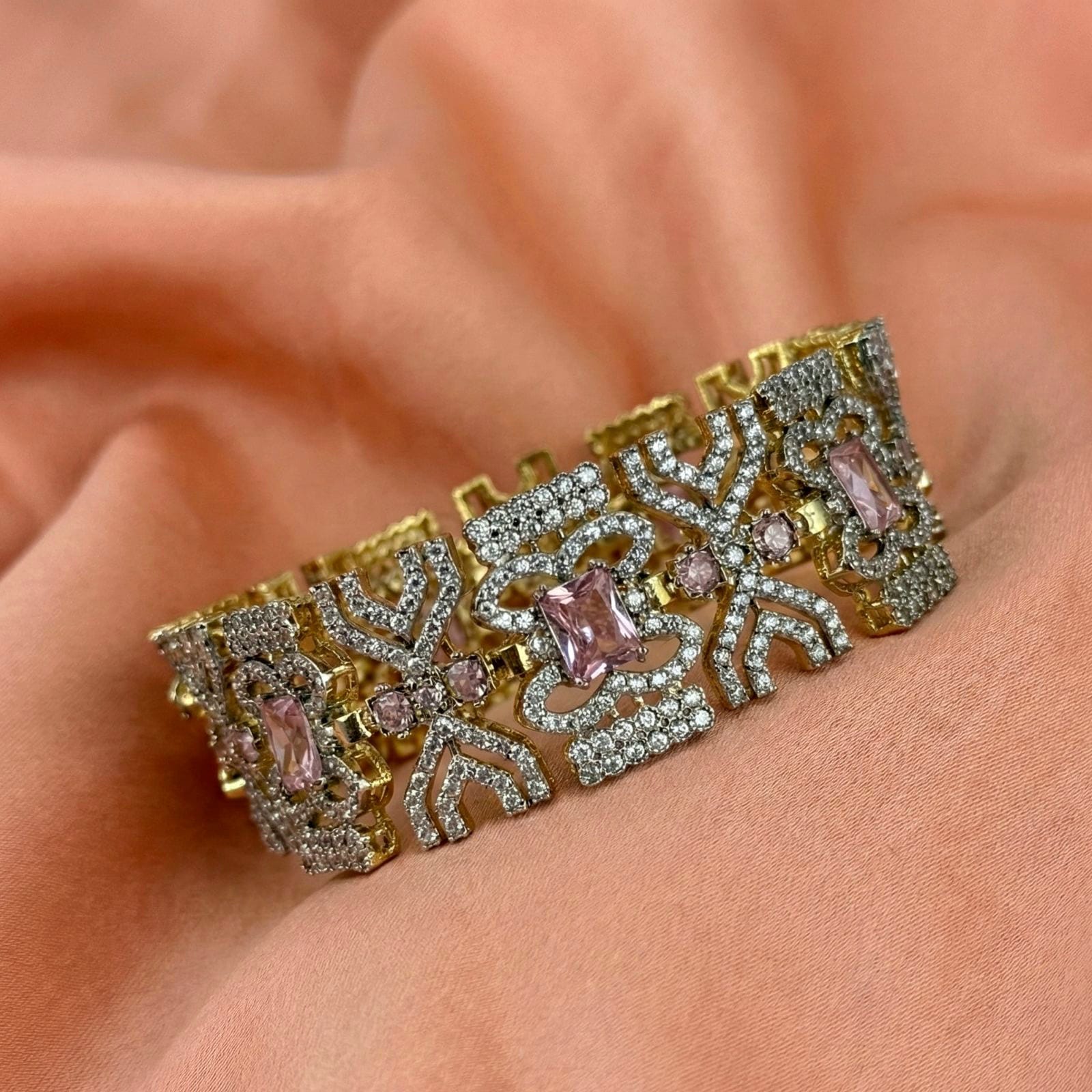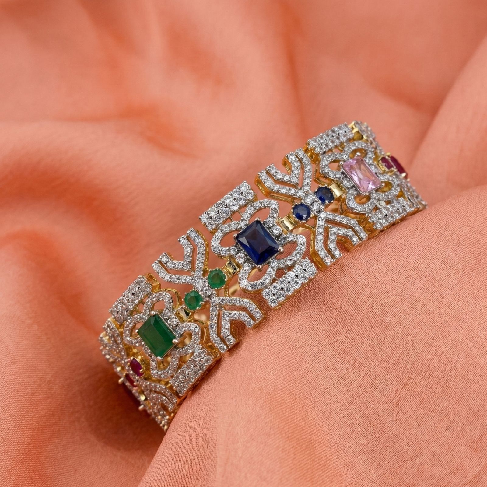 Designed with a sleek openable mechanism for easy wear, this bracelet features high-quality stones that sparkle beautifully with every movement.