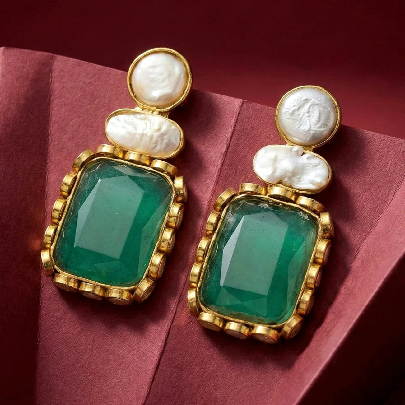 Each stud is framed in a polished gold-plated setting and features a calm white marble stone or a gentle jade green core.