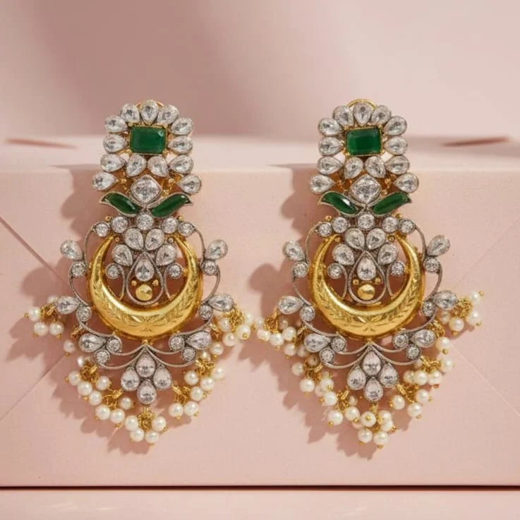 A tiny cluster of white pearls gives a hint of classic refinement beneath the deep green stone, making for a stunning contrast that contributes to the overall attractiveness of the earrings.