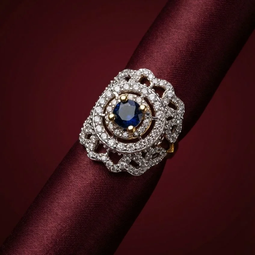 The Crown Blue Ring (Size 17) is a sophisticated and regal item designed to enhance your look.