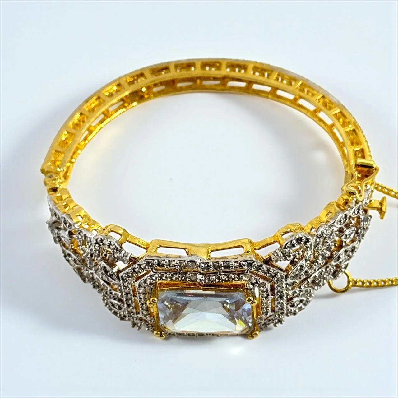 The design is shown on a stylish, openable band that is gold-plated, providing both opulent style and daily comfort.