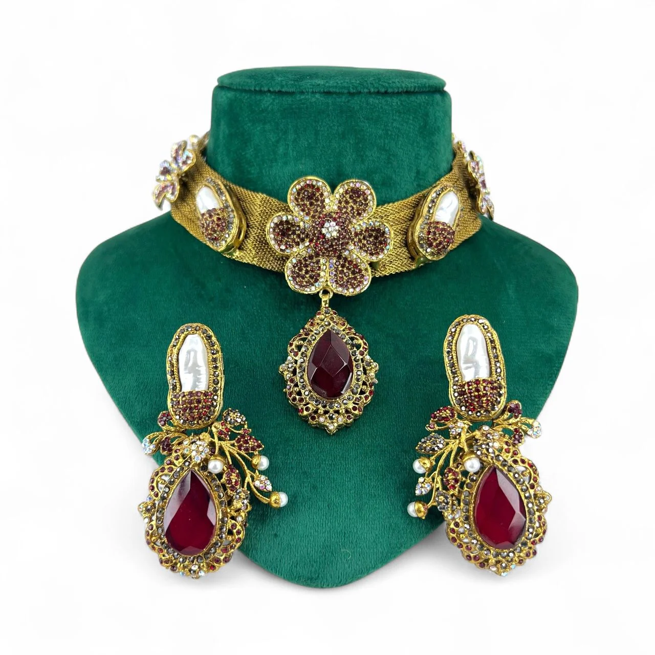 This combination exudes royal charm when paired with matching earrings, making it ideal for weddings, festive events, and large celebrations.