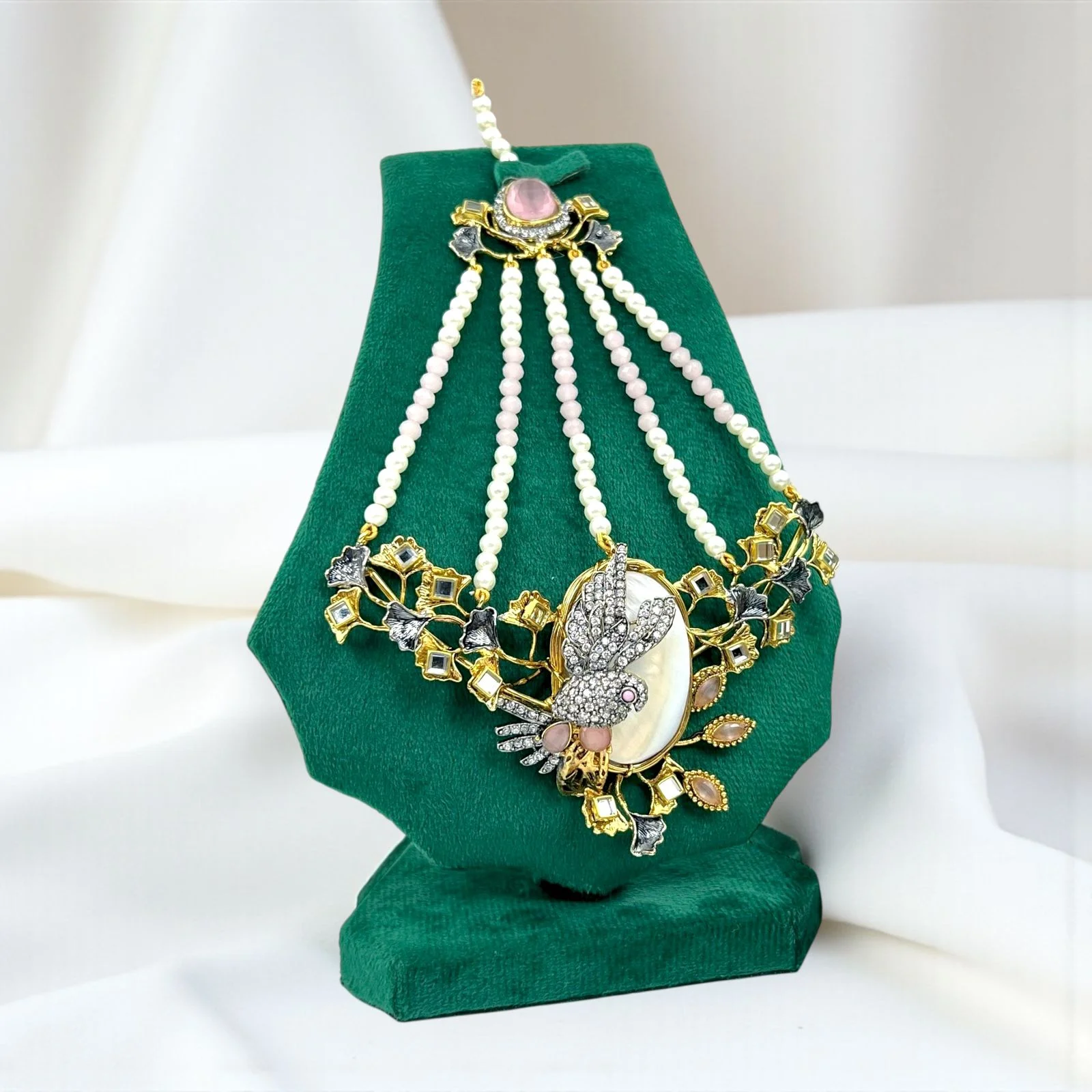With its extensive array of bridal accessories, and a gorgeously made hand harness, the Elayna Bridal Set guarantees that you will be perfectly synchronized from head to hand.