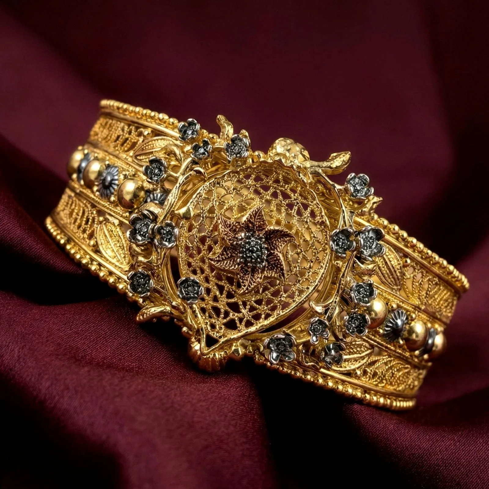 The elaborate craftsmanship and polished finish make it a standout item for festive parties, weddings, and special festivities, and the openable style guarantees effortless wear.
