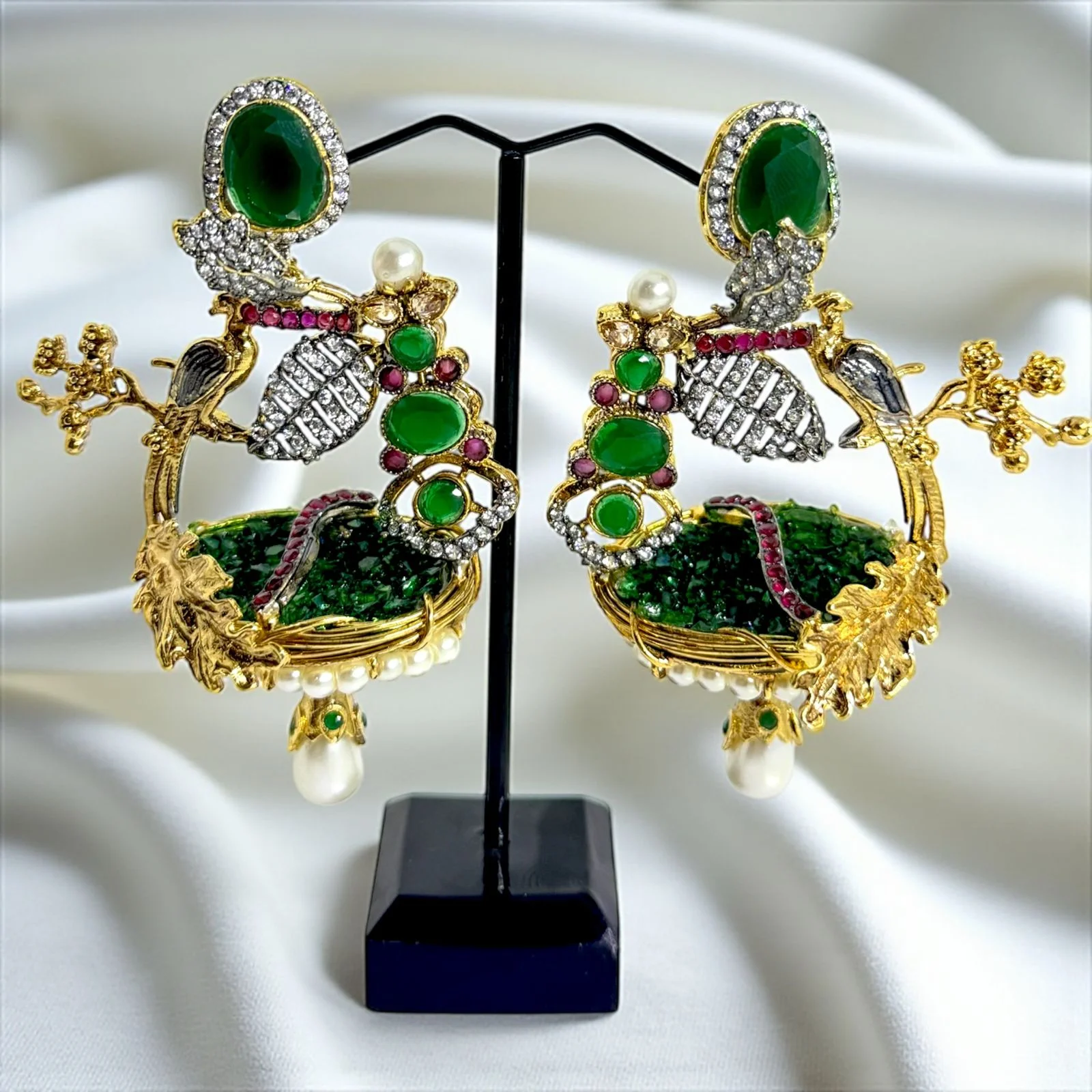With our captivating Emerald Bird Earrings, a statement item that combines elegance and fun, you can let your style soar.
