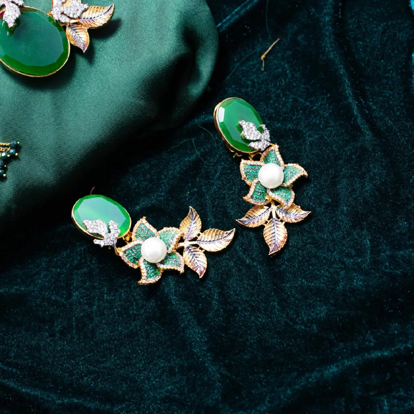 This Emerald Floral Set, exquisitely influenced by the beauty of nature, displays a magnificent fusion of luxury and artistry.