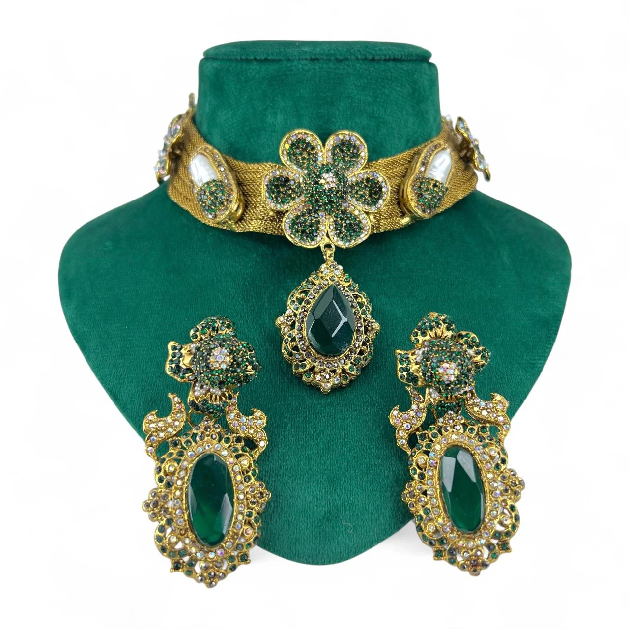 This necklace set exudes regal majesty and exquisite craftsmanship, making it ideal for weddings, festive events, or evening celebrations.