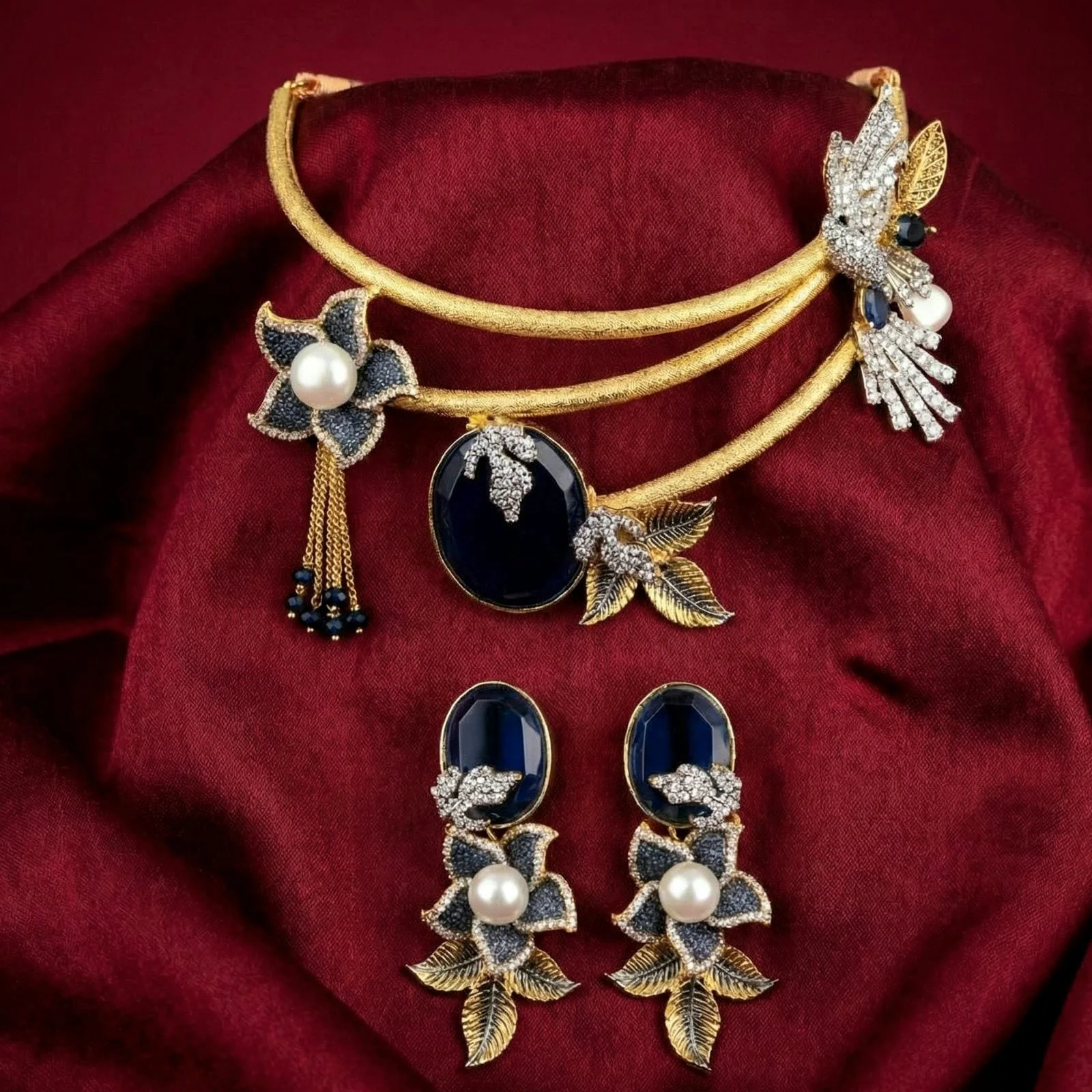 This Floral Blue Set, exquisitely completed with an opulent gold-plated finishing, embodies classic elegance.