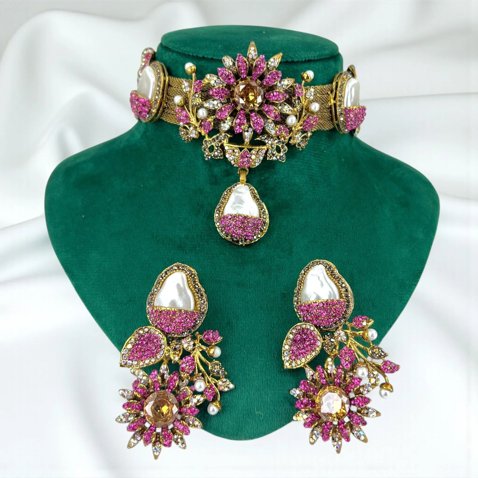 With its delicate artistry and rich details, this gorgeous Floral Magenta Jewelry Set is sure to turn heads and make a timeless statement.