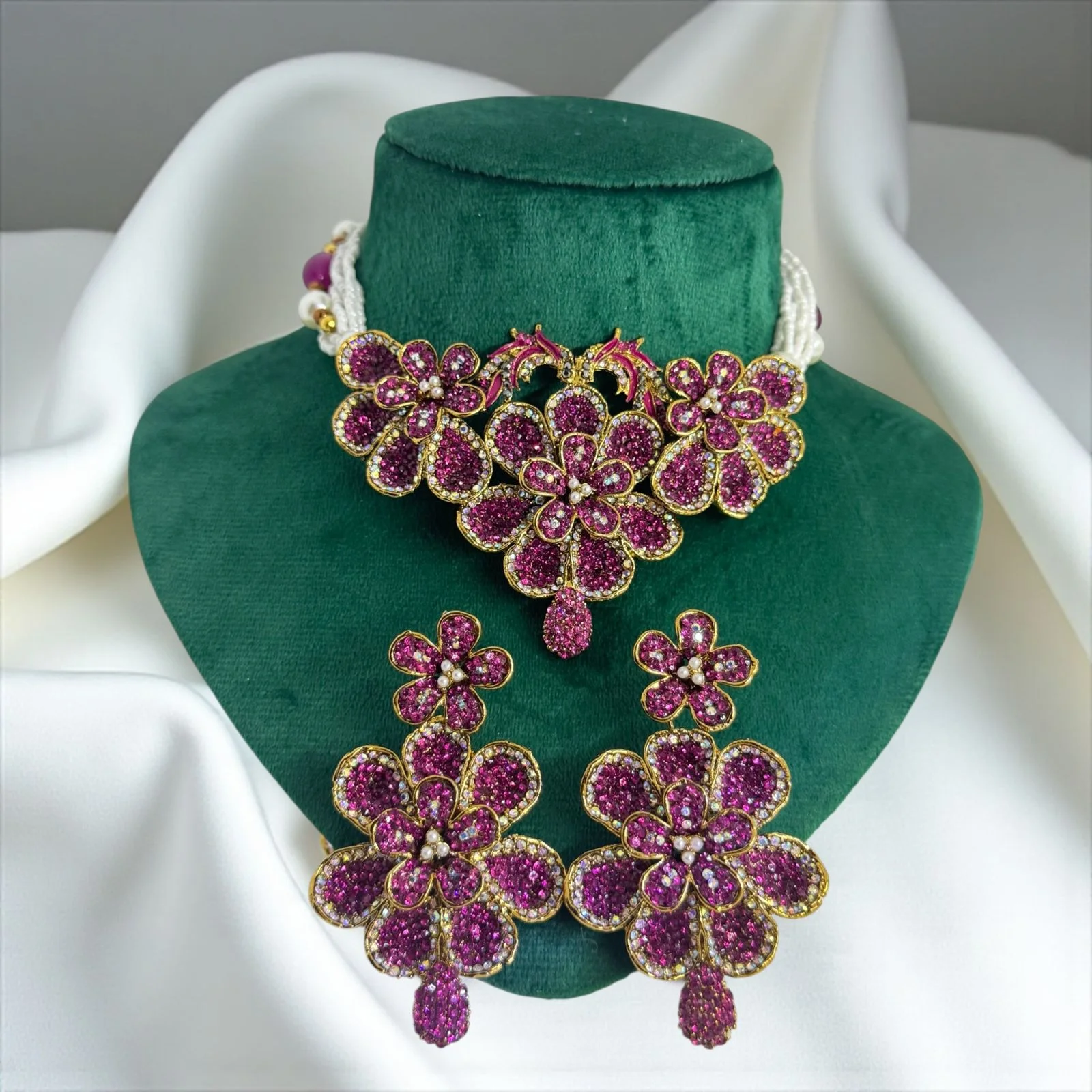 Bold, gorgeous, and brimming with style, the Florence Magenta Set is a gorgeous jewelry set in the floral style that is sure to turn heads.