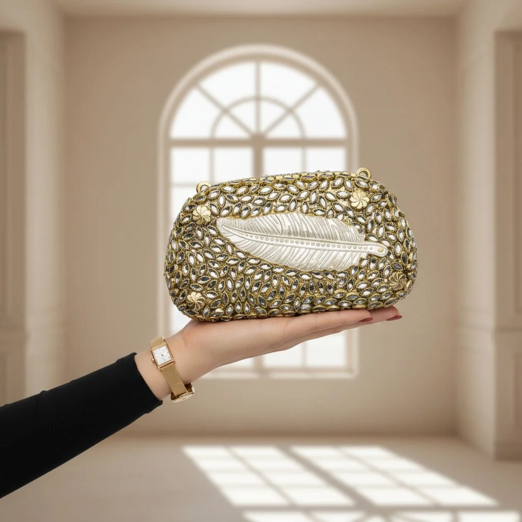 A statement piece that adds flair to any ensemble, this small clutch is stylish, striking, and portable, making it ideal for weddings, parties, and celebrations.