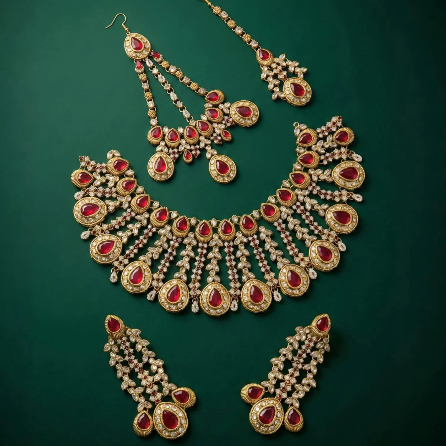 With its chic patterned frame, the Glamour Ruby Bridal Set exudes bridal charm and perfect elegance.