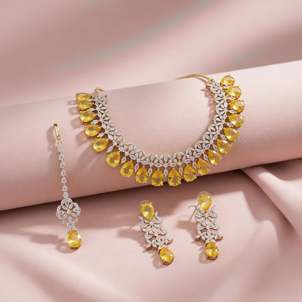 This stunning Golden Necklace Set, which is created in an opulent golden frame, will elevate your look.