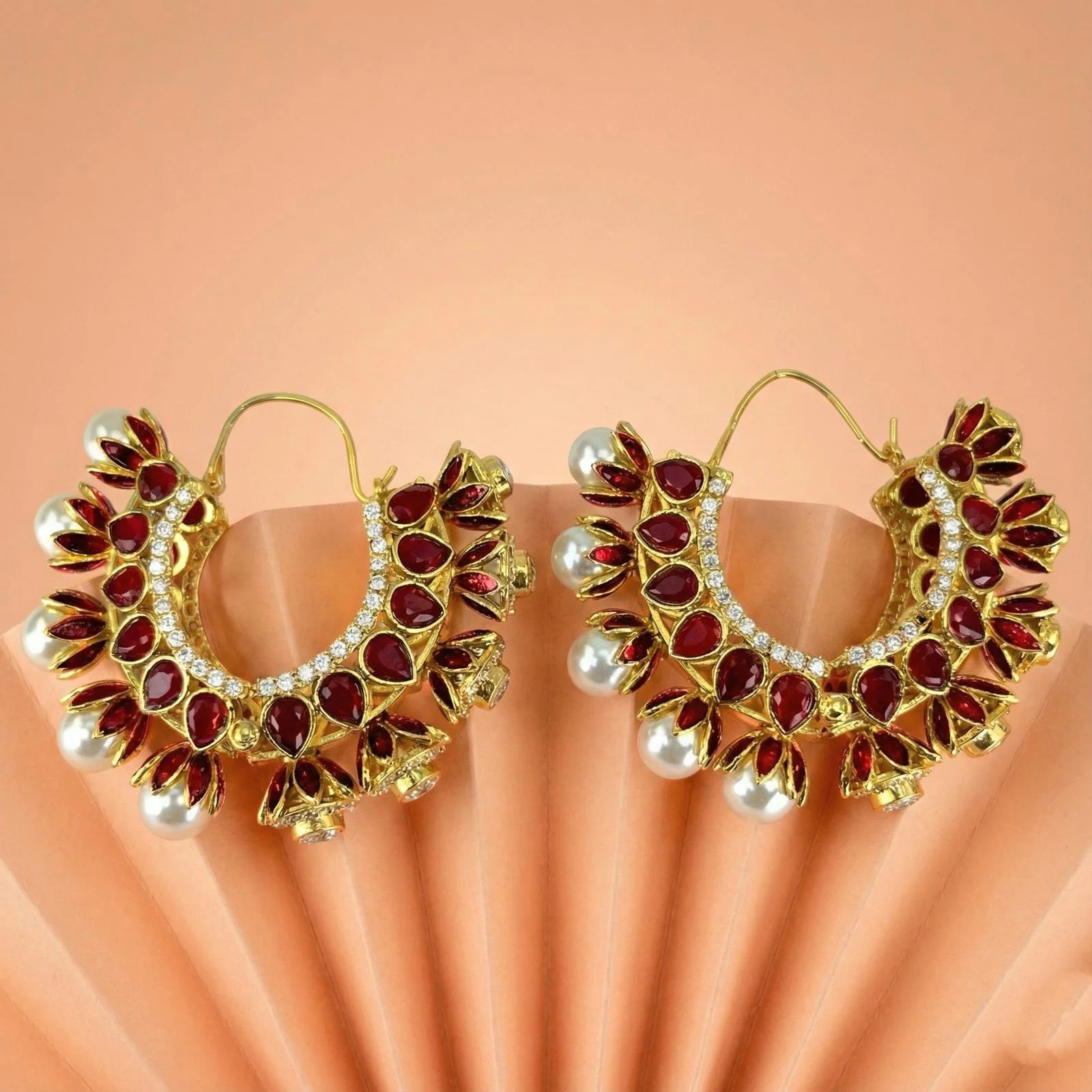 This gorgeous Indian Maroon Bali, with its opulent gold-plated frame, honors traditional Indian craftsmanship.