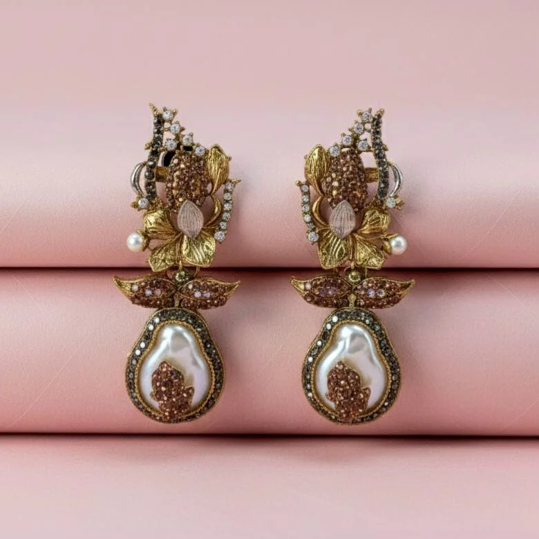 Its elaborate design skillfully blends traditional floral inspiration with modern elegance.