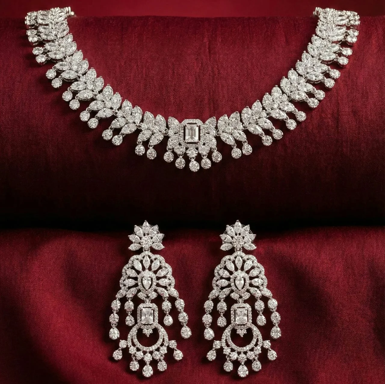 The set has an opulent and brilliant appeal thanks to its exquisite silver zircon stone decoration.