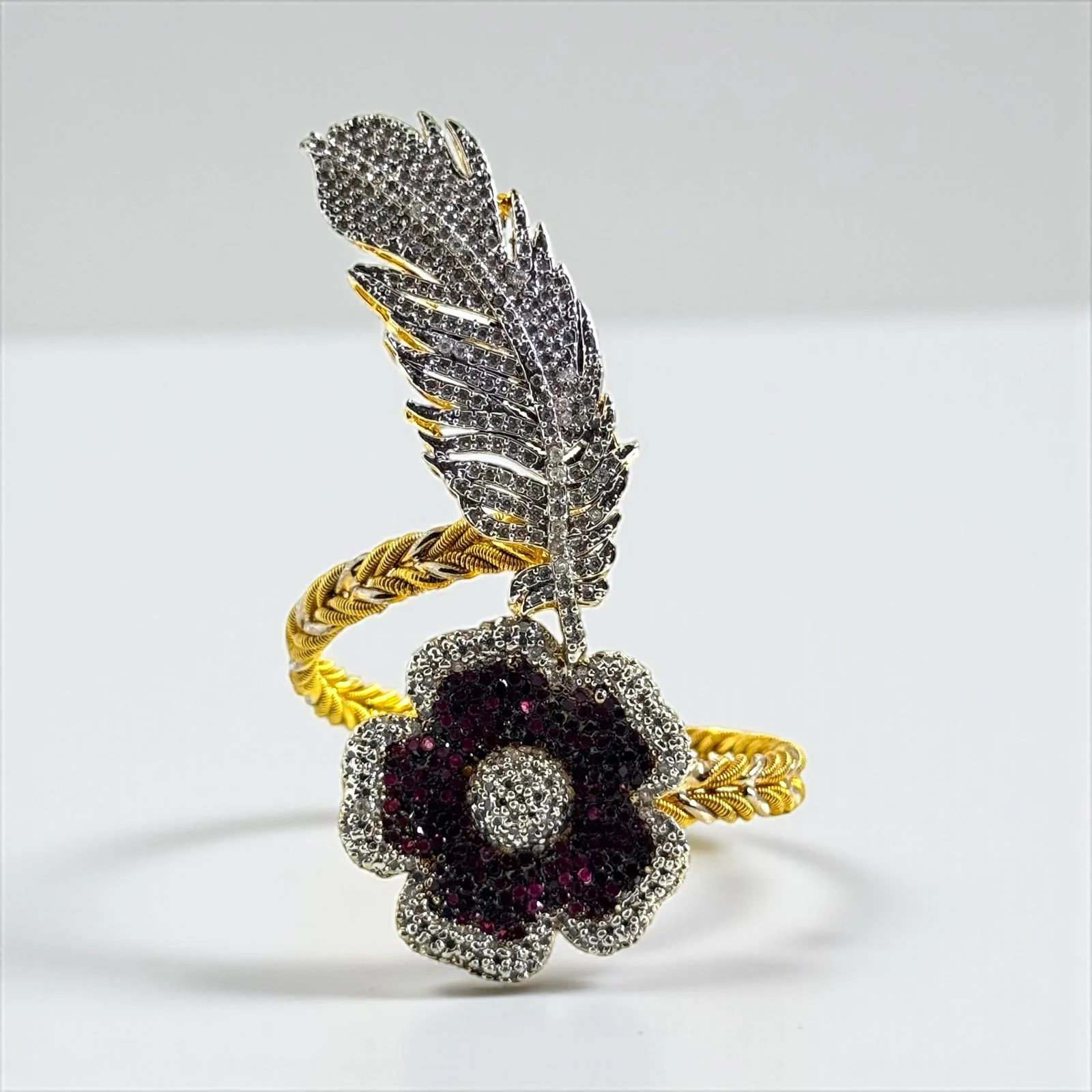 Sparkling silver zirconium stones add a refined touch of shimmer, enhancing the floral detailing with subtle brilliance.