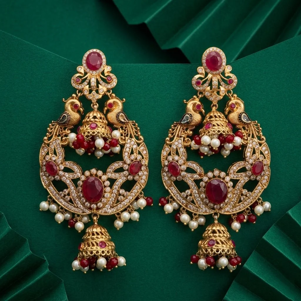 These jhumkas are a declaration of majesty, elegance, and exquisite craftsmanship, making them ideal for weddings, celebrations, or evening wear.