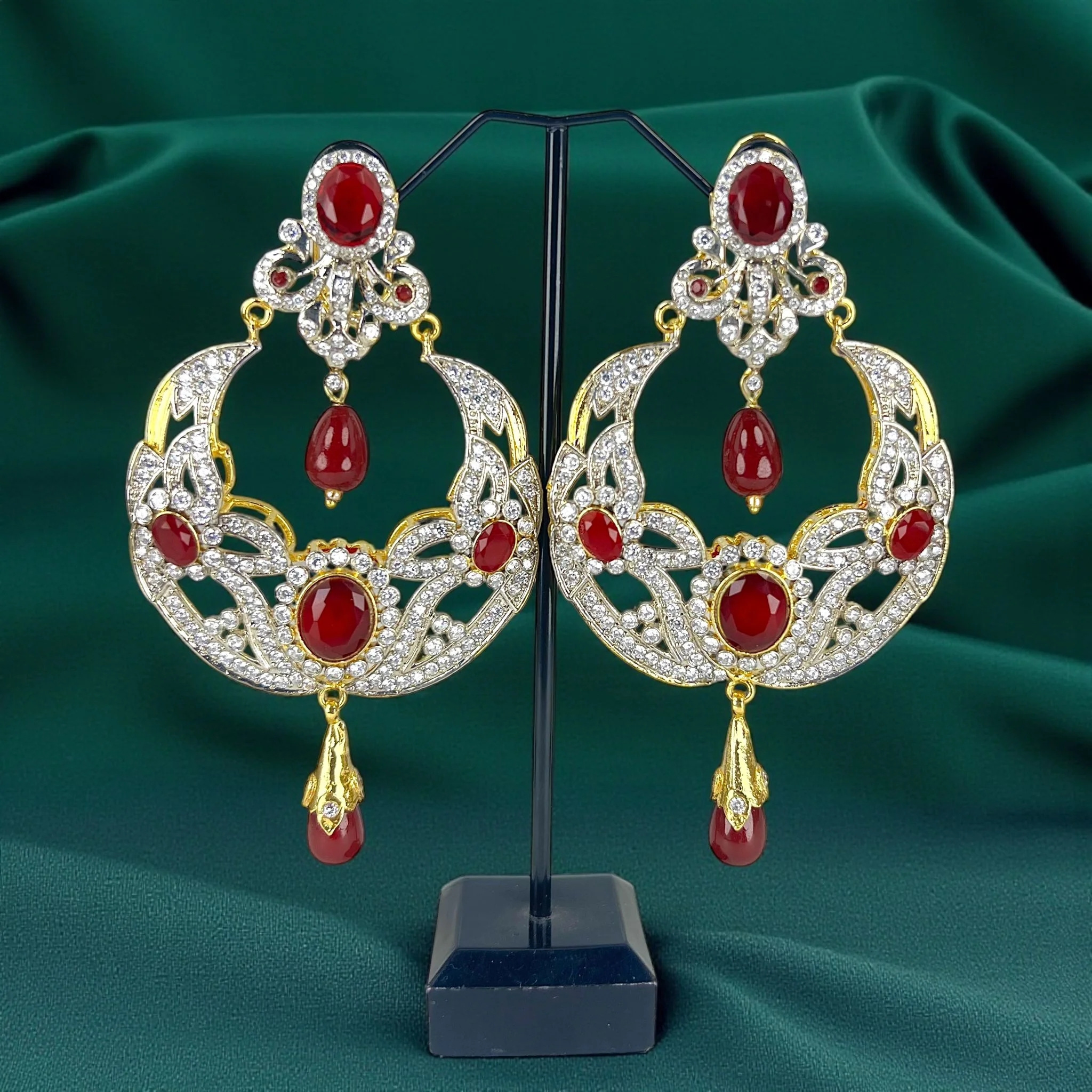 These exquisitely designed, richly gold-plated Maroon Stone Earrings will make a striking yet elegant statement.