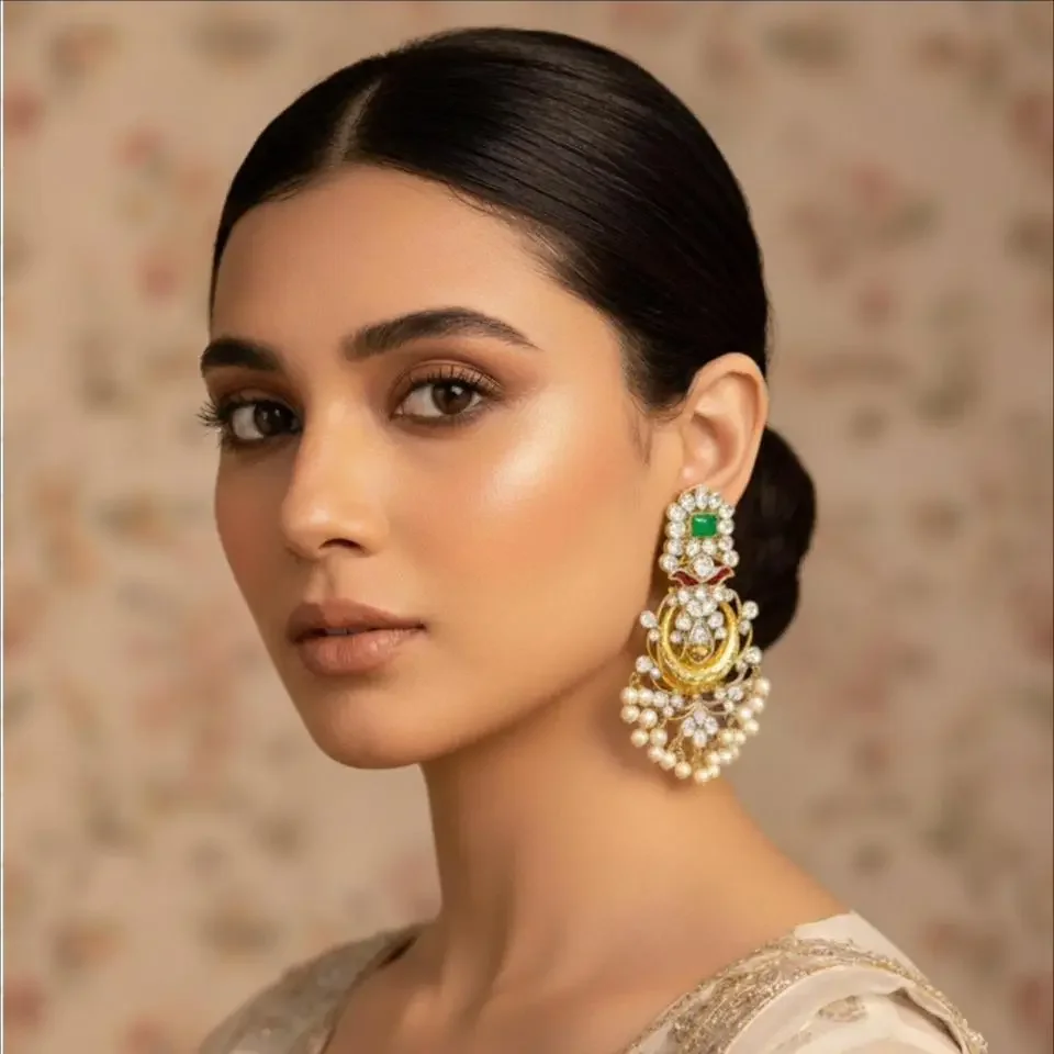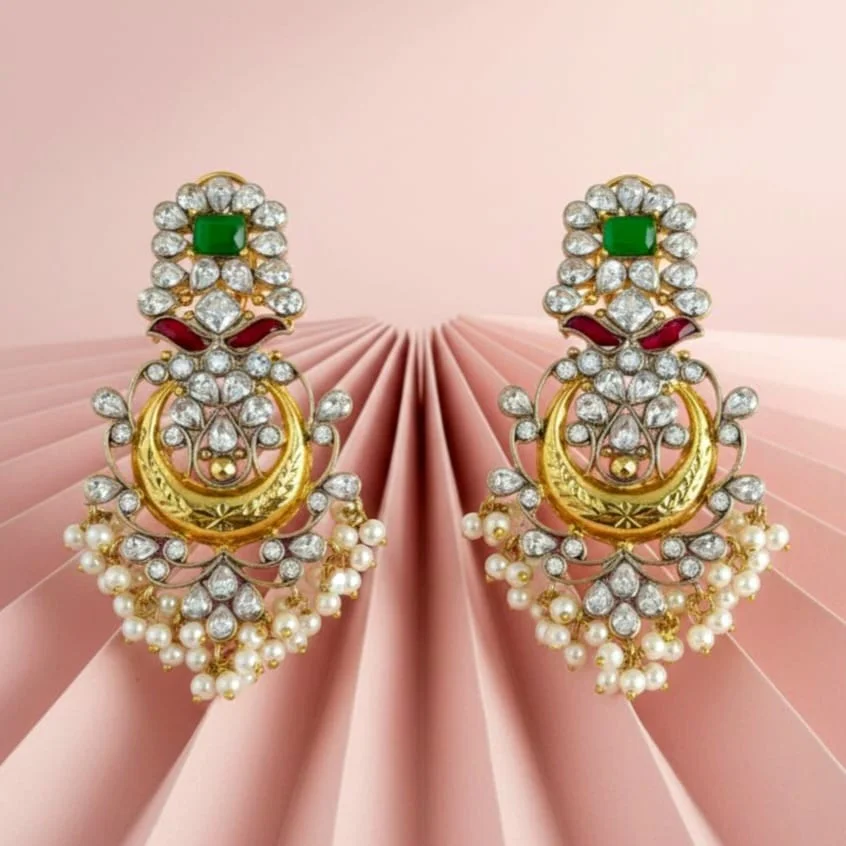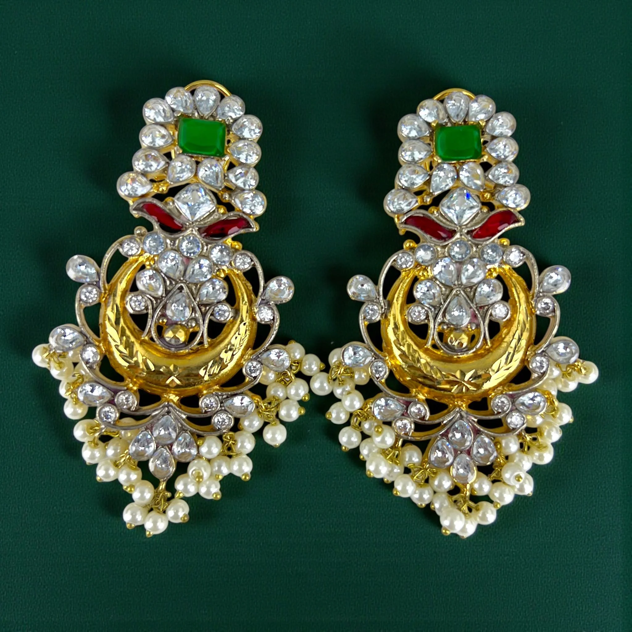 With these stunning Multi Kundan Earrings, which are beautifully made with luminous white Kundan stones that radiate timeless appeal, you may step into regal elegance.