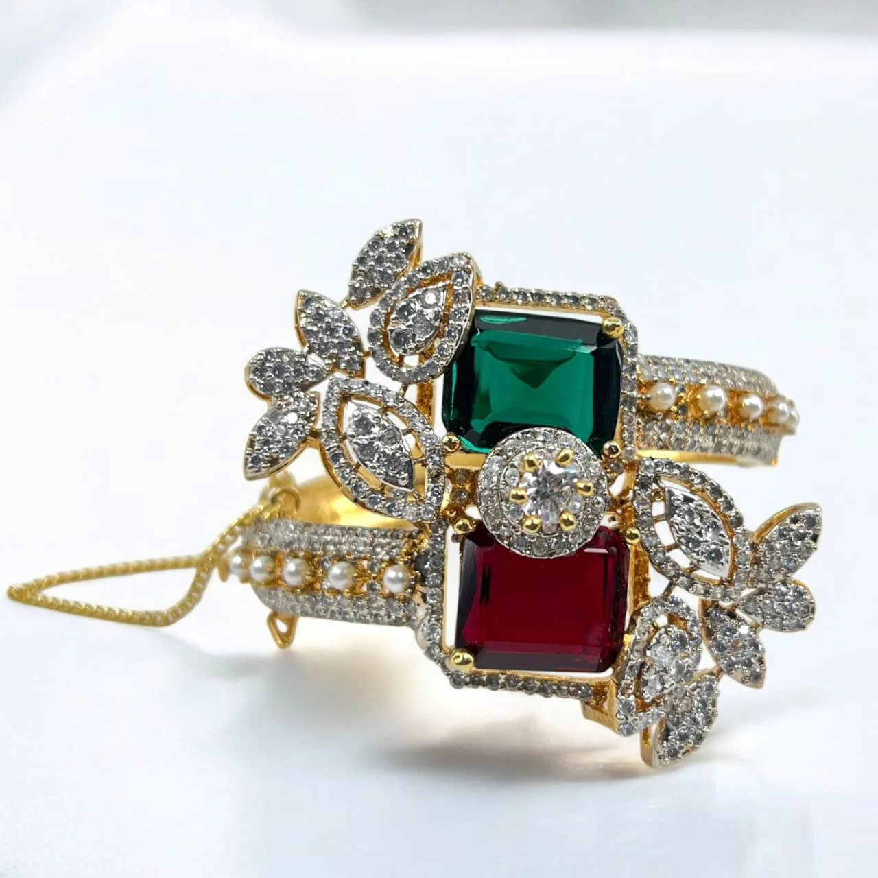 This bangle, which adds color, sparkle, and refinement to your jewelry collection, is the ideal fusion of modern design with classic charm.