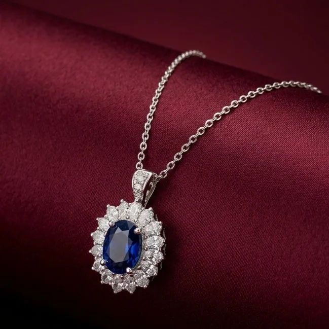 This Navy Blue Pendant, exquisitely matched with a sleek silver chain, will add a touch of refinement to your ensemble.