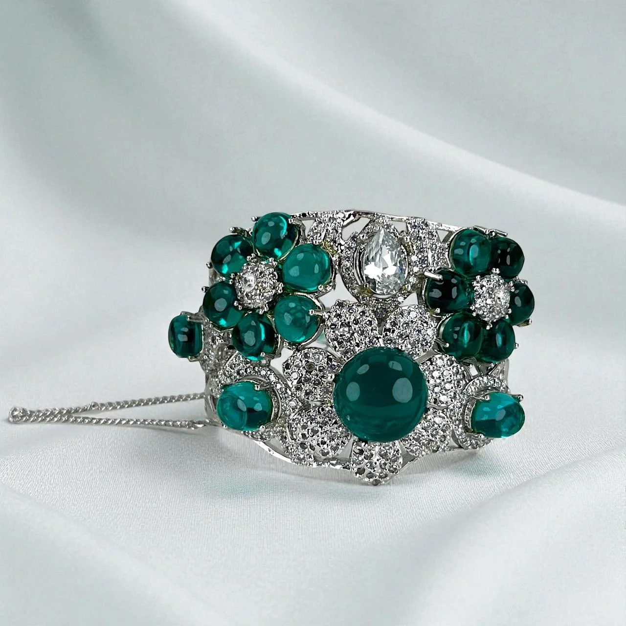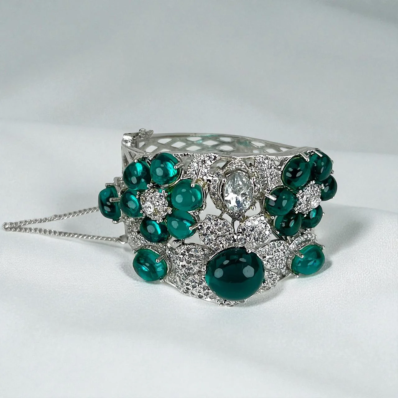 Silver zircon or glistening white stones that are expertly positioned to accentuate the bangle’s new, bright appearance add to its splendor.