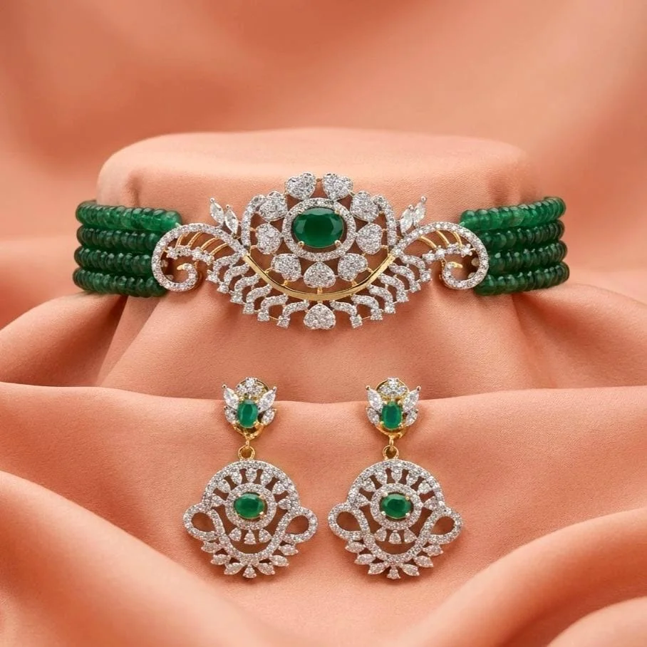 Enjoy classic elegance with this lavish green choker set, which is exquisitely crafted to create a sophisticated impression.