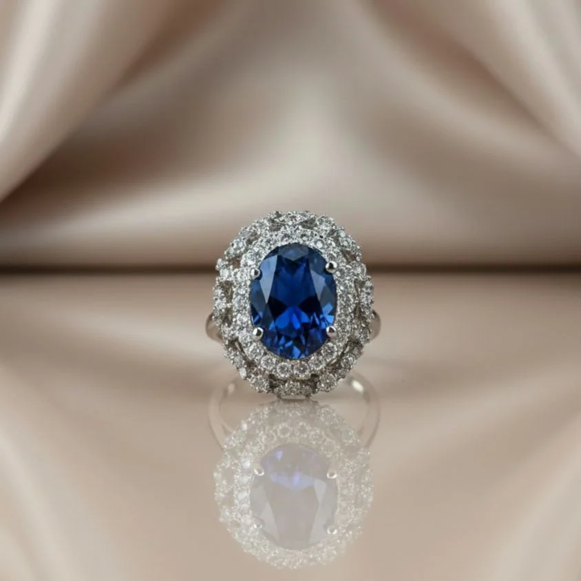 This Oval Blue Silver Ring is a classic piece that effortlessly combines style, sparkle, and elegance. It’s perfect for formal occasions, parties, or adding a splash of color to your regular outfit.