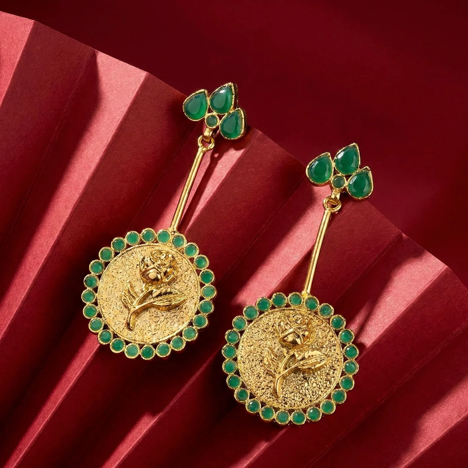 The Rosy Green Earrings are a stunning and striking combination of classic charm and flowery grace.