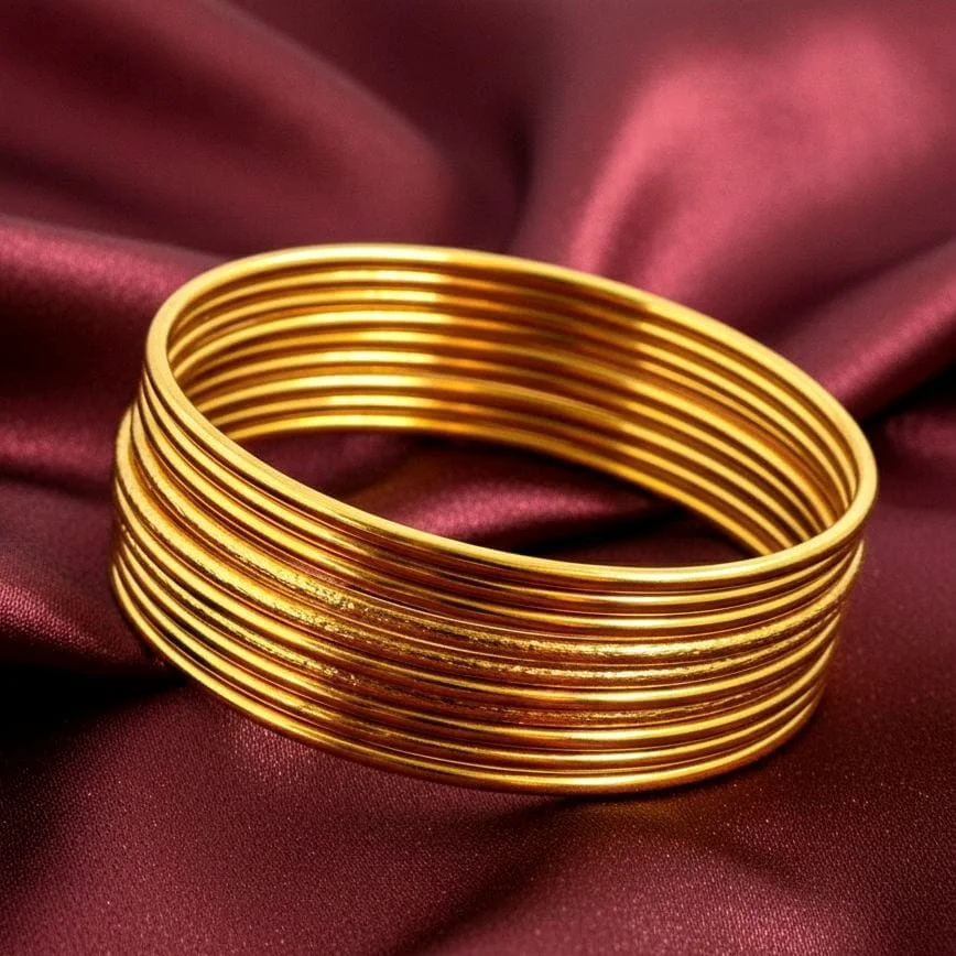 These Shiny Golden Bangles are exquisitely designed to bring shine and elegance to any ensemble, adding a radiant touch to your appearance.