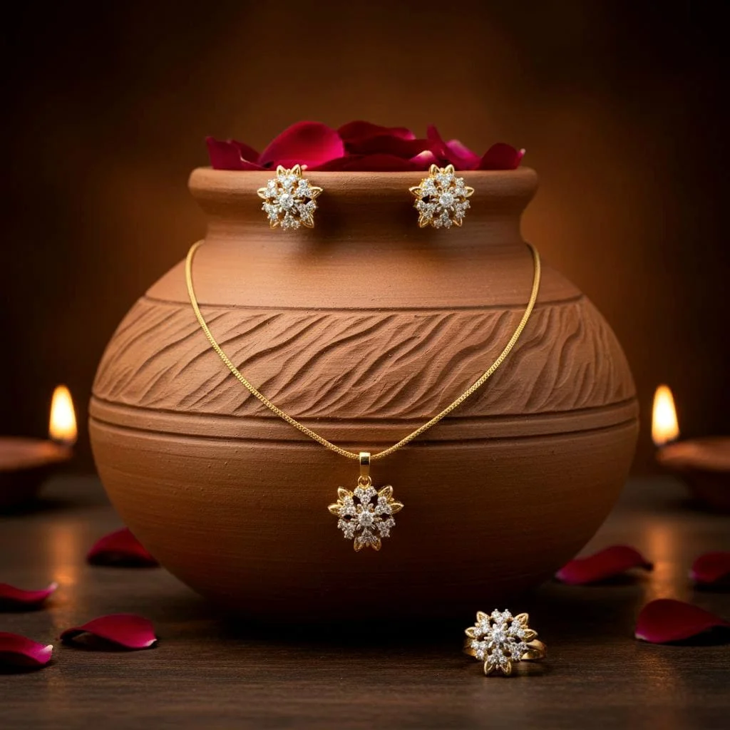Make a statement with this sophisticated Shiny Silver Combo Set, which has a chic gold-plated frame that goes well with the glistening silver stones.