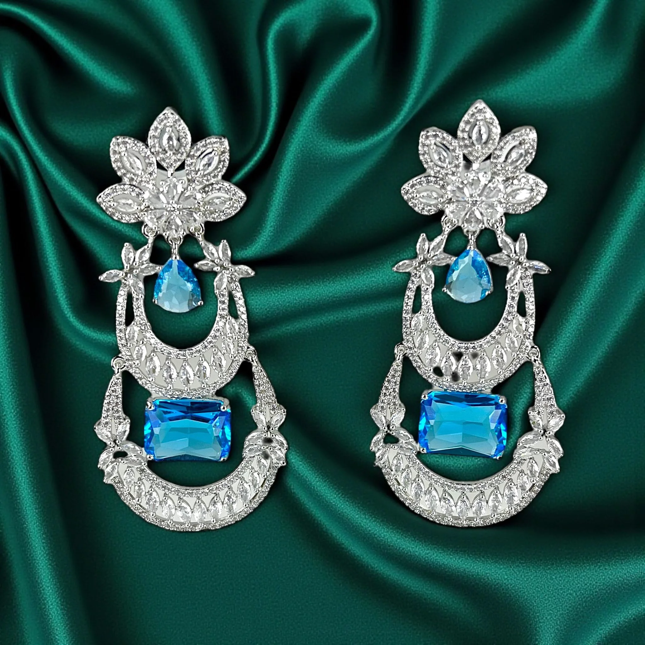 These gorgeous silver earrings, which have a sleek silver frame and glittering silver stones, will make you shine with understated refinement.