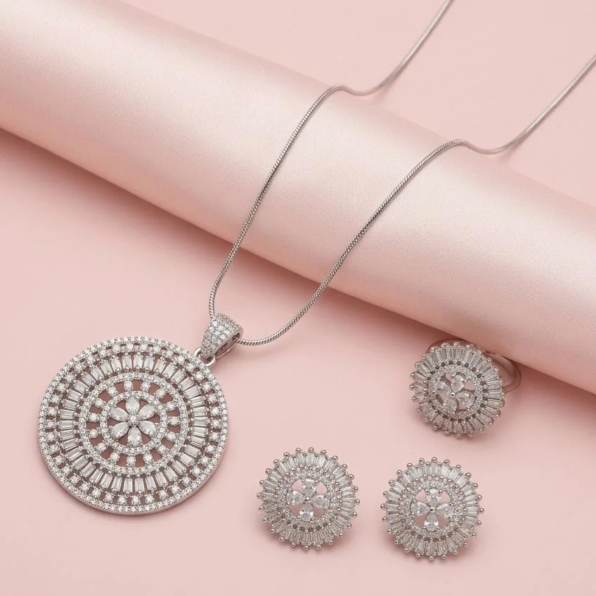 Home / Necklace Set / Sets / SILVER FLORAL SET