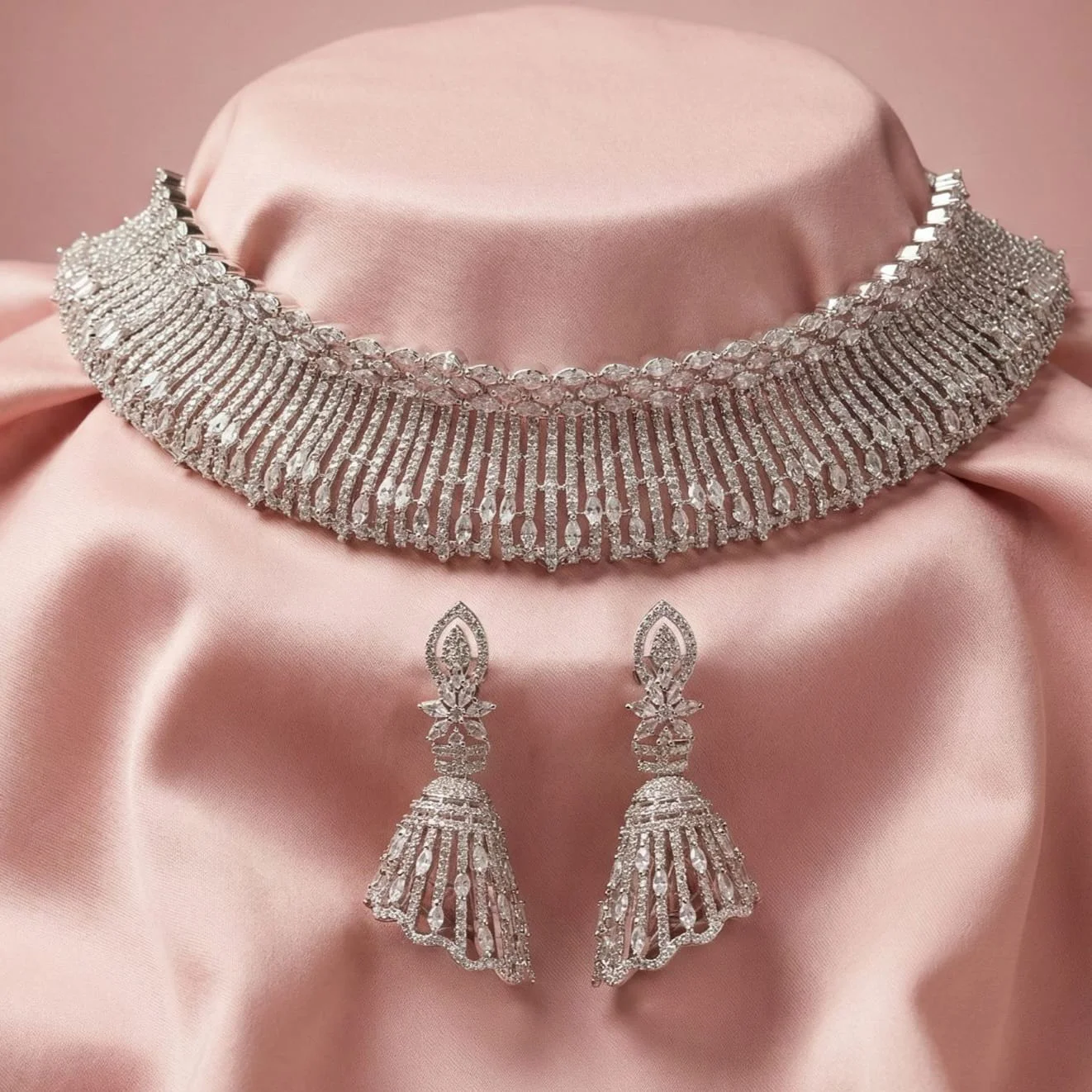 This gorgeous sparkling collar set, which has a sleek silver frame for a contemporary and sophisticated appearance, will make a striking fashion statement.