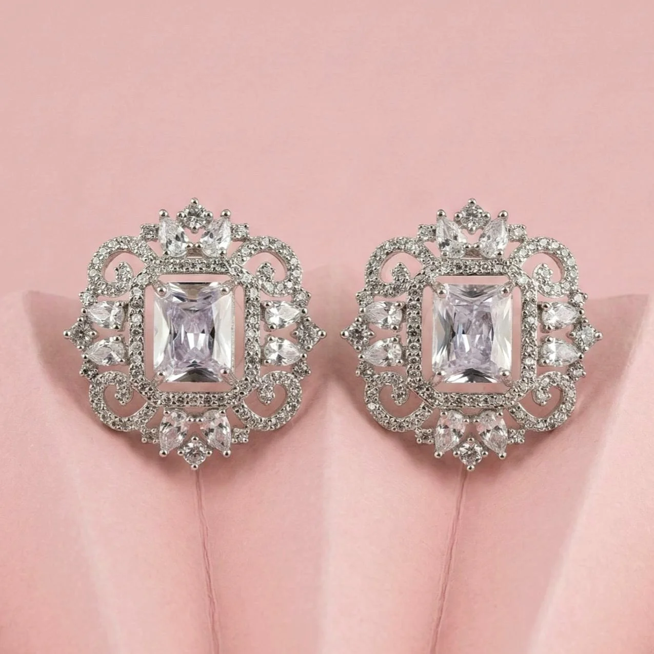 Home / Earrings / AD Stone Studs / SQUARE SILVER STUDS