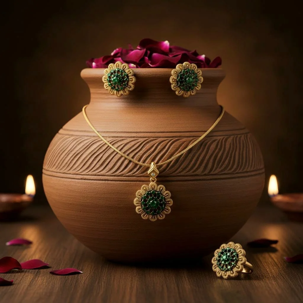 The Stylish Green Combo Set gives a splash of color and a hint of vintage glitz, making it perfect for both special occasions and daily use.