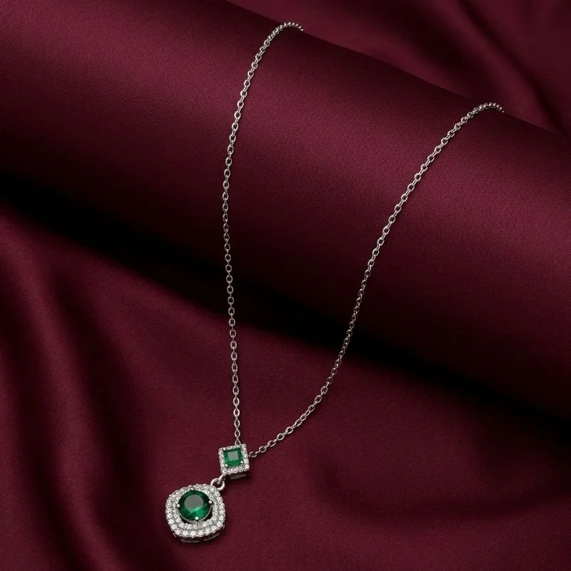 This chic green pendant, exquisitely combined with a sleek silver chain, will elevate your everyday elegance.