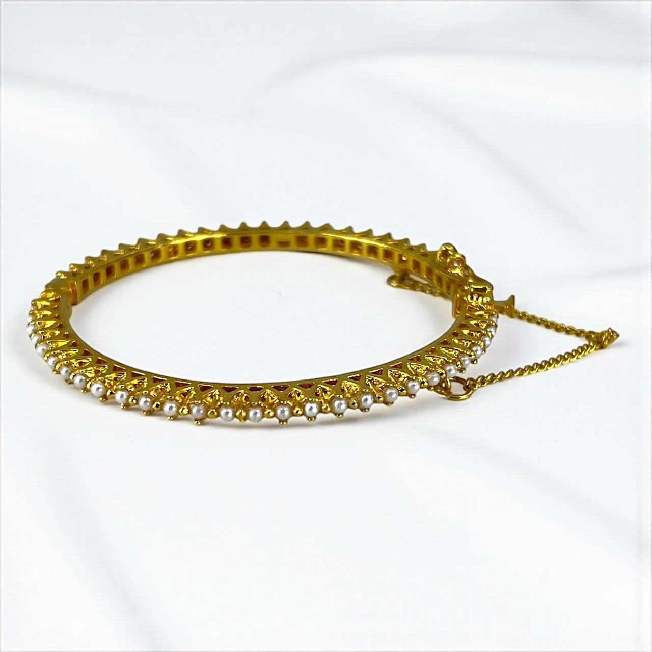 This bangle, which is adorned with exquisite white small pearls, has the ideal blend of understated elegance and brilliant beauty.