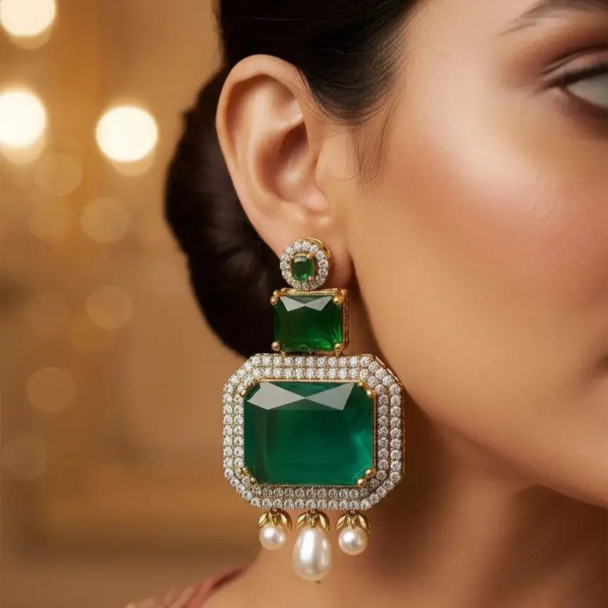With these captivating Zirconian Green Earrings, which are the ideal fusion of classic and contemporary style, you may radiate elegance and luxury.