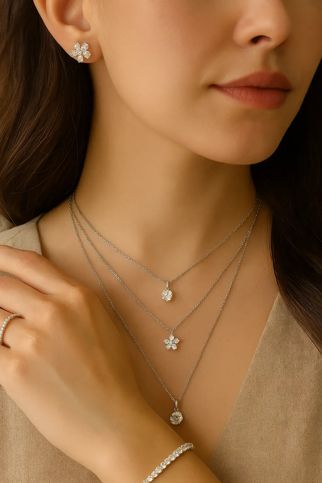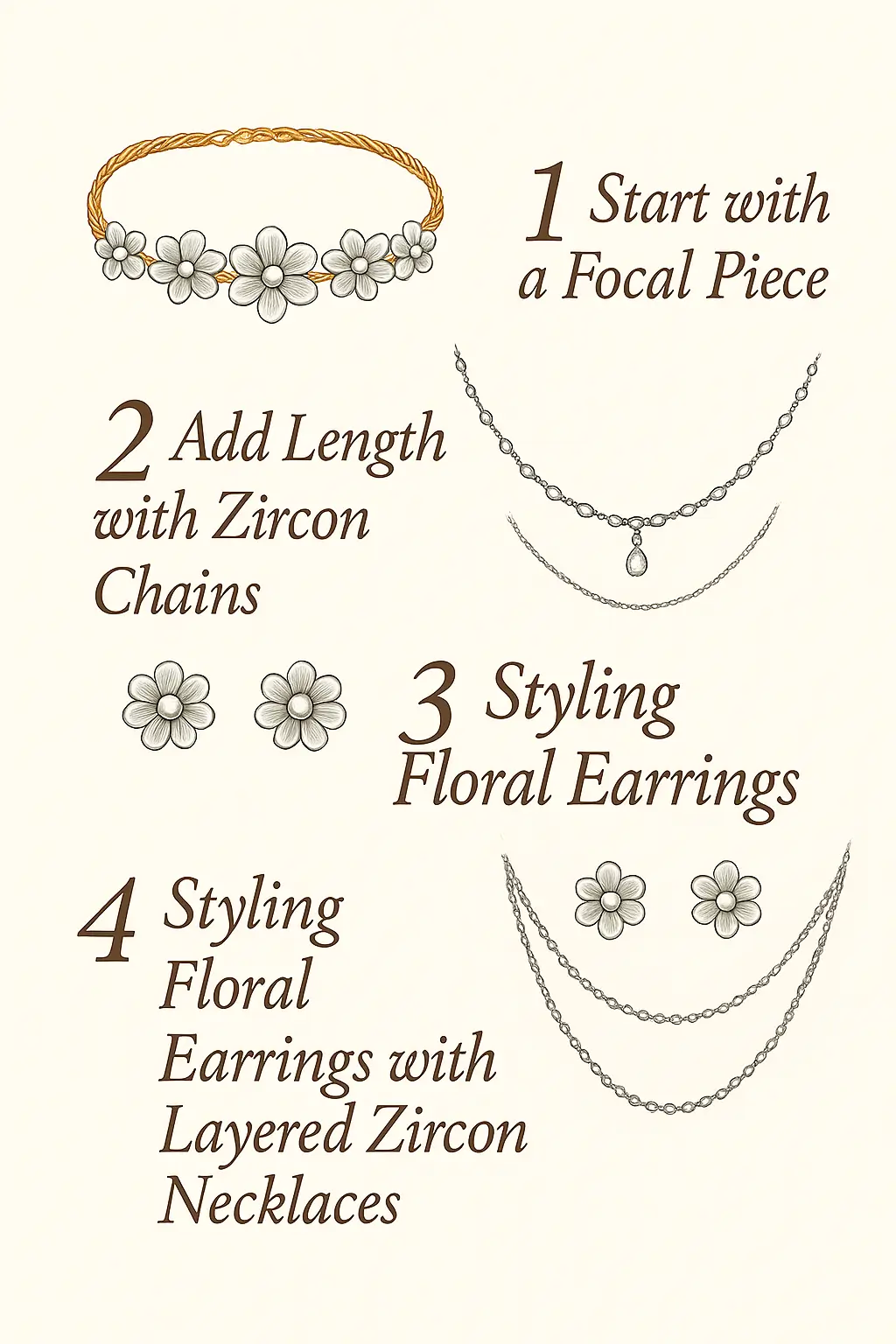 4. Styling Floral Earrings with Layered Zircon Necklaces: